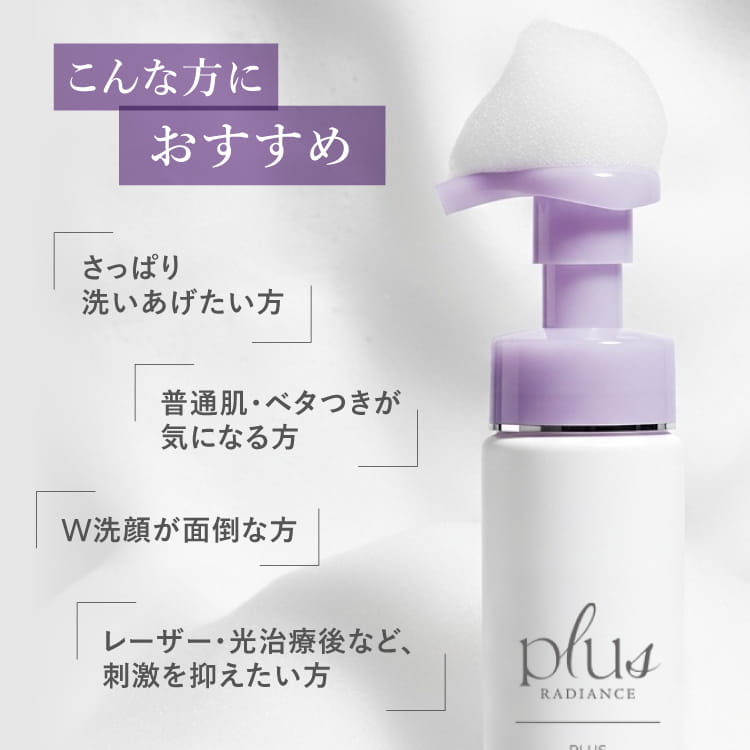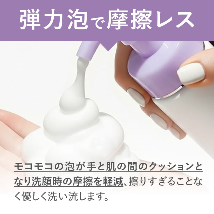 | 特徴 | 肌の敏感サインに着目し、肌への優しさをとことん追求したメイクも落とせる泡タイプの洗顔料です。 洗顔時の過剰な摩擦は、肌への負担となるとともに、さまざまな肌トラブルの原因となります。 メイクオフと洗顔をワンステップにしたことで洗いすぎを防いだり、肌に触れる回数が減ることで肌への負担や物理的刺激を軽減します。 特殊なポンプを採用したことで、誰でも簡単に弾力のあるきめ細かい泡を作ることができます。 モコモコの泡が手と肌の間のクッションとなり洗顔時の摩擦を軽減、擦りすぎることなくメイク汚れや毛穴の汚れを優しく洗い流します。 また、泡立て不足による肌への摩擦も最小限に抑えます。 素肌に寄り添う、いたわりクレンジングで 「触らない」「擦らない」摩擦を抑えて、繊細な素肌を護ります。 < こんな方におすすめ > ・さっぱり洗い上げたい方 ・普通肌、ベタつきが気になる方 ・W洗顔が面倒な方 ・肌が敏感で物理的刺激を抑えたい方 ・レーザー、光治療後など刺激を抑えたい方 |