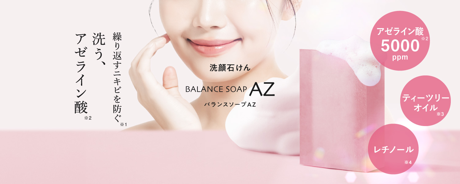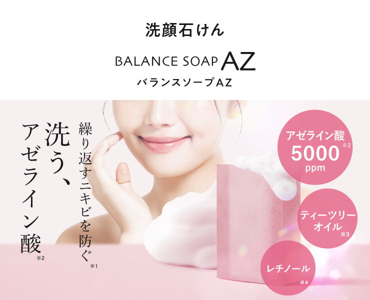 ニキビの原因となる過剰な皮脂などの不要な汚れや角質をスッキリ洗い落とし、アゼライン酸※2が肌の水分と油分のバランスを整えます。全身にもお使いいただけます。