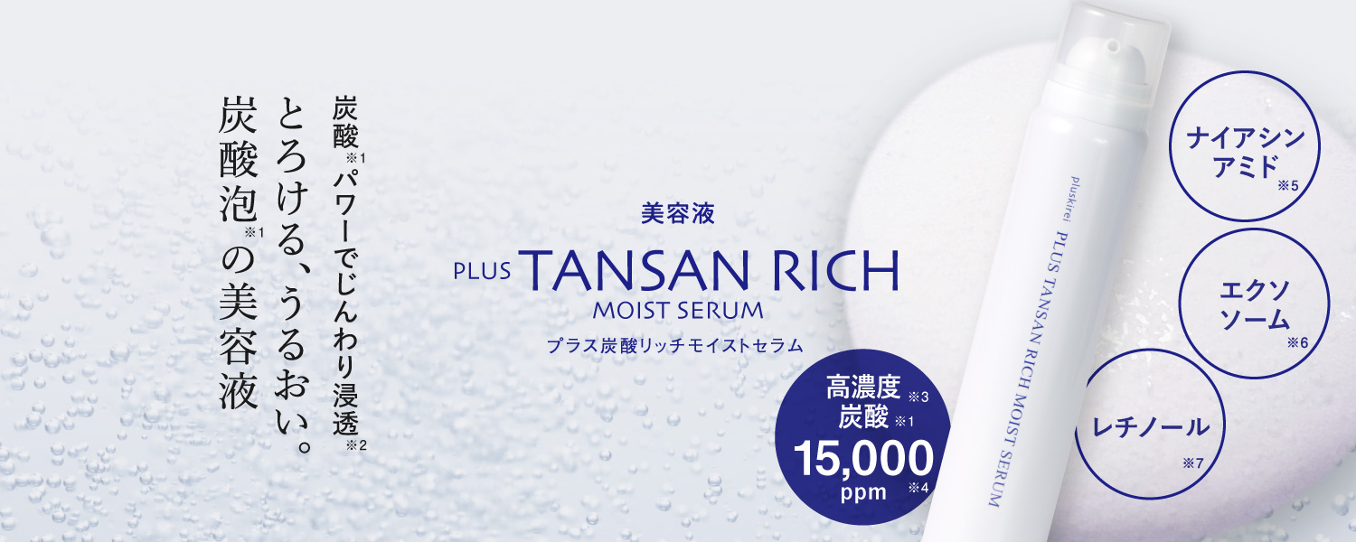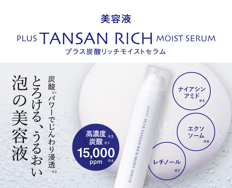 炭酸※1を高濃度※3に15,000ppm※4配合した泡状炭酸※1美容液。美容成分が溶け込んだとろりと濃厚な美容液が、カサつく肌をもっちりうるおいで満たします。